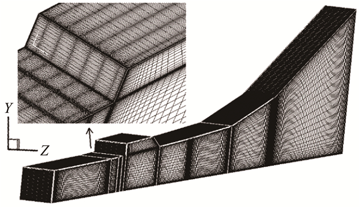 | 图 2 模型计算网格 Fig.2 Mesh topology of the scramjet model |