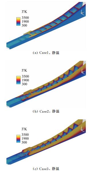 | 图 7 不同模态下流道内静温分布 Fig.7 Distributions of temperature along the flowpath for different modes |
