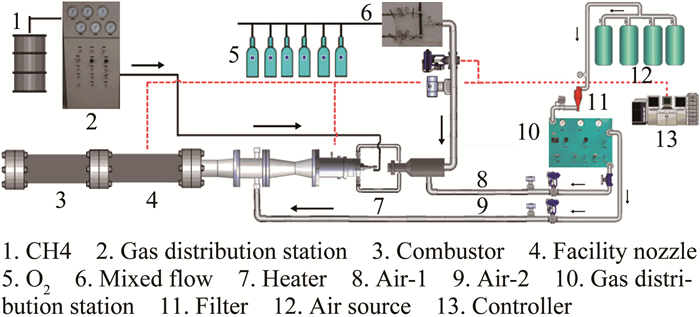 图 2 甲烷燃烧加热燃烧室直连式试验系统示意图 Fig.2 Methane combustion heated facility |