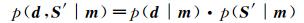 式中:d为时间域地震数据; S′为频率域地震数据; m为待反演模型参数; p(d, S′|m)表示反演结果与时频联合域地震数据的匹配程度; p(d|m)代表反演结果与实际时间域地震数据之间的匹配程度; p(S′|m)代表反演结果与频率域地震数据的匹配程度。