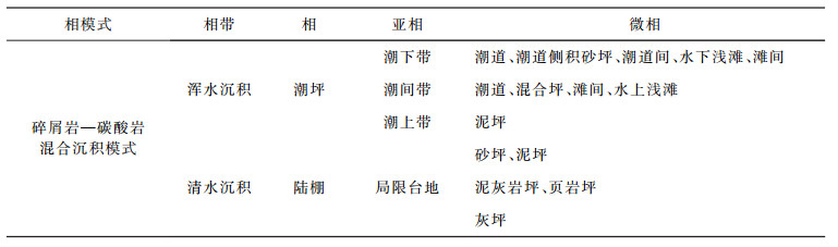 5 结论1) 研究区为碎屑岩—碳酸盐岩混合沉积模式, 处于浑水沉积相带的HP, HS, TP, TS, UI, UM, US亚段为缓坡型潮坪沉积环境, 处于清水沉积相带的CL, BL, AL亚段为陆棚相沉积环境。在潮坪沉积环境中, 工区不发育潮上带, 潮间带仅发育在工区东部狭小区域, 潮下带最发育; 潮道、潮道侧积砂坪为最有利沉积微相。