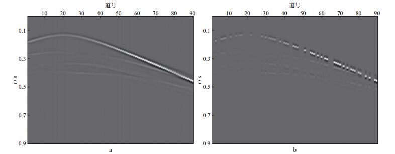 虽然本文方法重建的地震数据信噪比要比压缩感知技术常用的稀疏基高, 但还不能令人完全满意, 因此, 我们下一步的研究方向是构造重建效果更好的稀疏基。