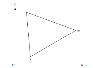 | $ \left\{ \begin{array}{l} {a_i} = {y_i} - {y_m},{b_i} = {x_m} - {x_n}\\ {a_j} = {y_m} - {y_i},{b_j} = {x_i} - {x_m}\\ {a_m} = {y_i} - {y_j},{b_m} = {x_j} - {x_i}\\ \Delta = \frac{1}{2}\left( {{a_i}{b_j} - {a_j}{b_i}} \right) \end{array} \right. $ |
