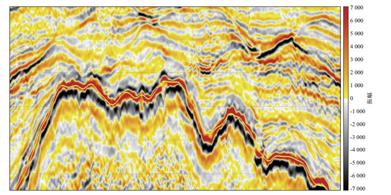 2.2 实际资料地震相分析实际地震资料来自琼东南盆地深水区某目标区, 该区内未钻井, 目标储层为具有强反射特征的砂岩储集体, 在地震剖面上表现为强振幅反射特征。