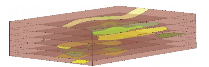 图 4 三维地层物理模型第1~6层砂体自上而下的空间分布情况 |