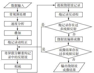 图 1给出了基于奇异值分解的绕射波分离成像处理流程, 在实际应用中易于实现。