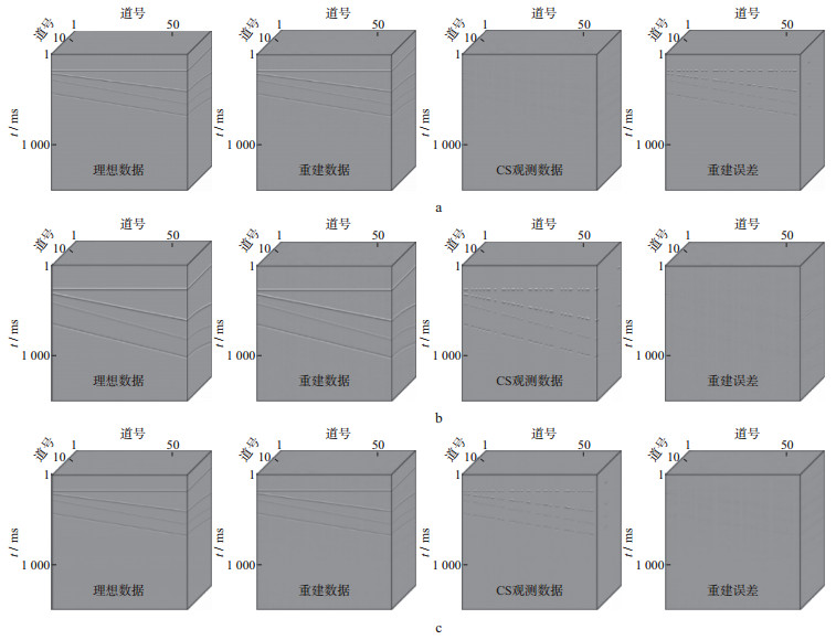 以下为定量对比上述3种随机观测系统的数据重建质量, 设计如下3个数值试验。