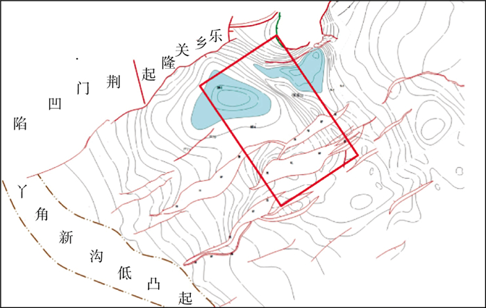 江汉盆地古近纪-新近纪时期为陆相盐湖盆地, 潜江组沉积时期沉积中心位于潜江凹陷, 目的层陡倾角构造及断层等复杂构造发育, 因此该地区的精细断层提取对储层刻画具有重要意义。地层结构曲率属性对于精细描述断层等构造具有明显的优势, 因此在对该工区叠后地震资料进行解释前提取地层结构曲率属性有助于提高后续人工解释的可靠性及准确度。采用常规商业软件结构曲率提取模块对该工区叠后资料进行处理, 其结果不但受噪声影响较大, 同时所提取出的结构曲率受陡倾角构造及大断层等复杂构造的屏蔽, 不能有效地刻画陡倾角及大断层等复杂构造附近区域的结构。为此, 本文以WANG等[22]提出的高精度地层倾角估计方法为基础, 针对潜江凹陷三维叠后地震资料, 进行结构曲率(包含最大正曲率和最大负曲率)估计, 并将其用于刻画陡倾角及大断层等复杂构造区域的断层结构等。