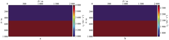 图 2 两层模型速度参数 a 纵波速度; b 横波速度 |