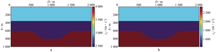 图 5 凹陷模型速度参数 a 纵波速度模型; b 横波速度模型 |