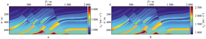 图 7 复杂模型速度参数 a 纵波速度模型; b 横波速度模型 |