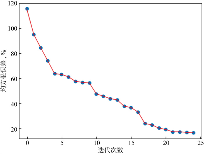 图 15 基于地-井电磁模型的复杂油气藏反演误差迭代曲线 |