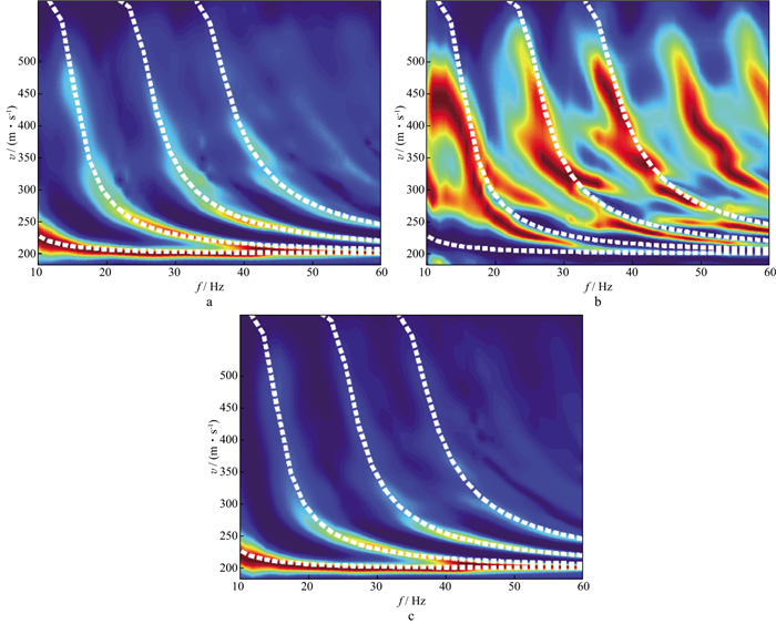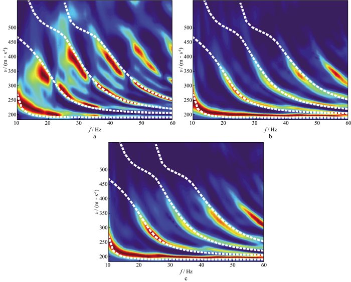 图 13 X(a), Z(b)和RY(c)分量对应的f-v谱 |