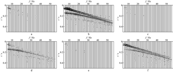2) 由于不同的波型在六分量上具有不同的波场特征, 综合利用初至、波形、振幅、相位、偏振和频散等信息, 可以通过单个物理点的六分量观测实现弹性波的波场识别和分离, 而在常规三分量平动观测中, 一般需要一个排列的密集观测才能达到此目标。