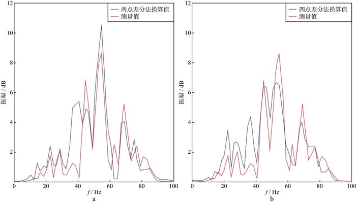 图 9 两点(a)和四点(b)差分法计算结果振幅谱对比 |