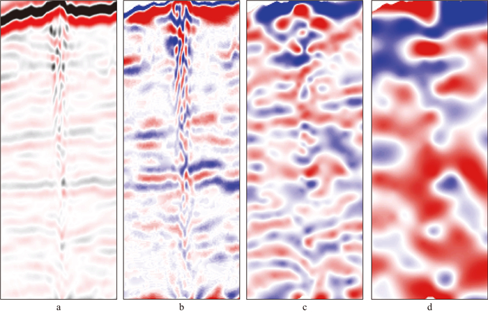 图 2 模型BEMD提取结果 a地震剖面; b IMF1分量; c IMF2分量; d IMF3分量 |