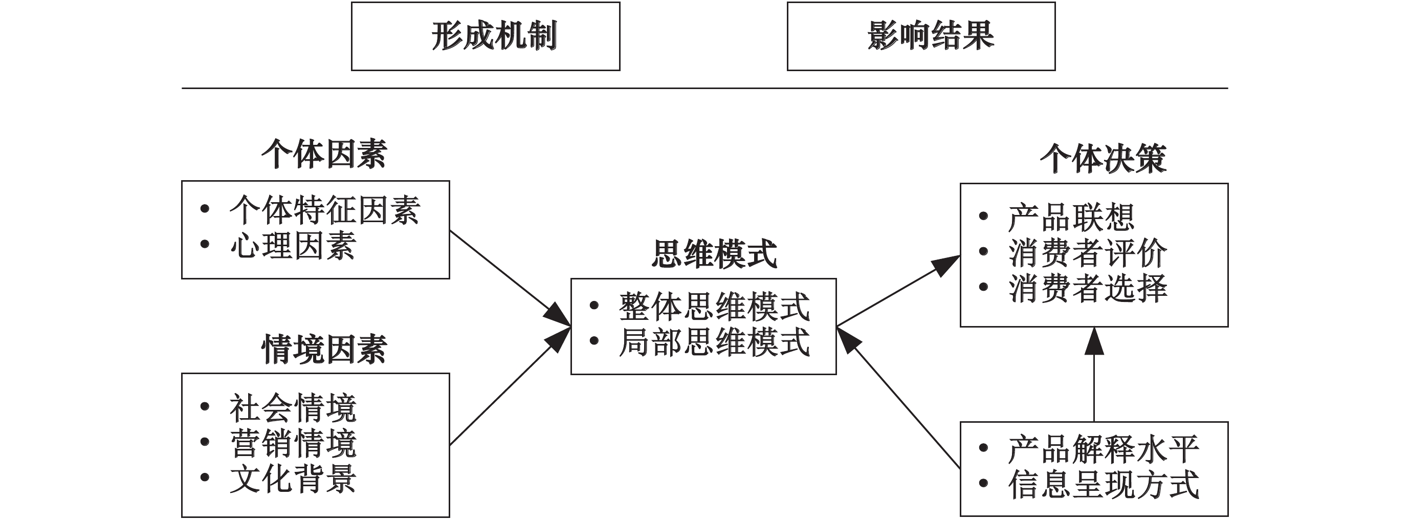 通过以上整体局部思维模式的影响结果分析,再结合影响因素等内容,本文在现有理论和实证研究基础上,整理了整体局部思维模式整合模型,如图2所示。