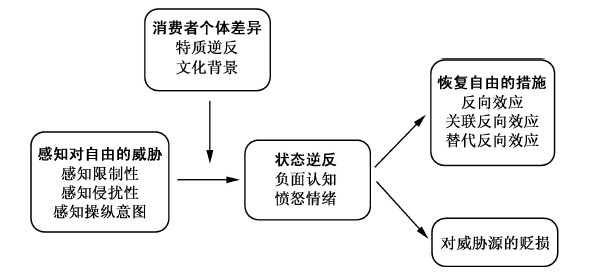 二、消费者心理逆反理论的核心观点及相关概念辨析心理逆反理论由美国心理学教授Brehm于1966年提出,主要内容为:人们往往相信自己拥有某些具体的行为或选择自由并珍惜这种自由,当这种自由被剥夺或面临威胁时,个体将产生一种旨在恢复被剥夺或受威胁自由的厌恶性动机状态,即“心理逆反”(Brehm和Brehm,1981)。可见,心理逆反理论主要涉及四个概念,分别是自由、威胁、逆反以及对自由的恢复。