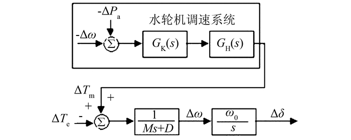 1 调速系统对阻尼影响机理分析本文的分析建立在包含水轮机调速系统的简化Phillips-Heffron模型上,如图 1所示.