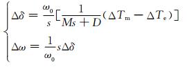 图 1中,Δδ和Δω分别为功角和转速增量;ΔTm和ΔTe分别为机械和电磁转矩增量;M为机组惯性时间常数; D为阻尼系数;ω0为系统基准角频率.