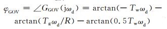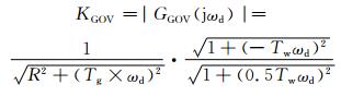 式中:KGOV和φGOV分别为水轮机调速系统传递函数在振荡角频率ωd时的幅值和相位角.为便于分析比较,令