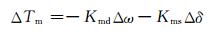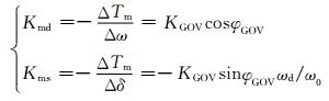 式中:KmdΔω是与Δω同相的转矩变化分量,是水轮机调速系统提供的附加阻尼转矩;Kmd为附加阻尼转矩系数; KmsΔδ是与Δδ同相的转矩变化分量,是水轮机调速系统提供的附加同步转矩;Kms为附加同步转矩系数.