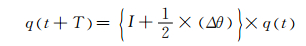 四元数的求解用一阶龙格库塔法,如下式所示:
