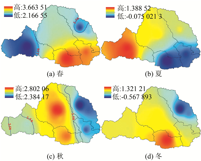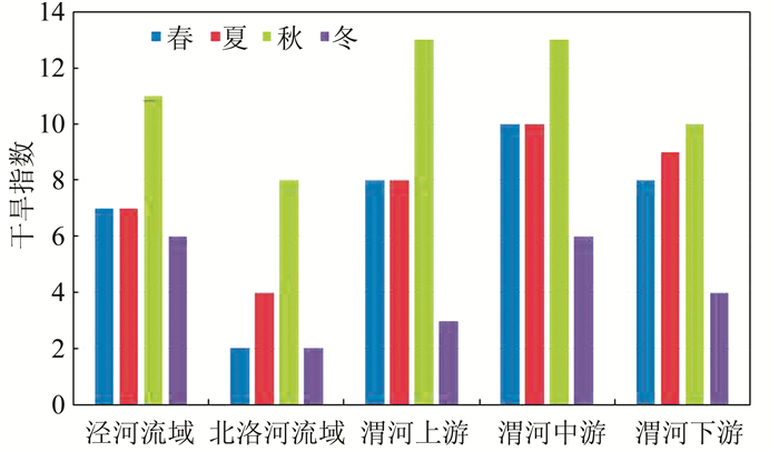 | 图 6 渭河流域季节干旱趋势变化 Figure 6 Seasonal drought trend of Weihe River Basin |