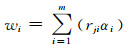 5) 确定评价指标隶属度权重,采用1.2节方法建立数学模型计算指标权重: