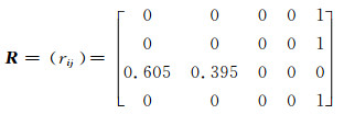 根据1.3小节第4步可得到评价对象对干旱等级的隶属程度,其隶属度矩阵R为