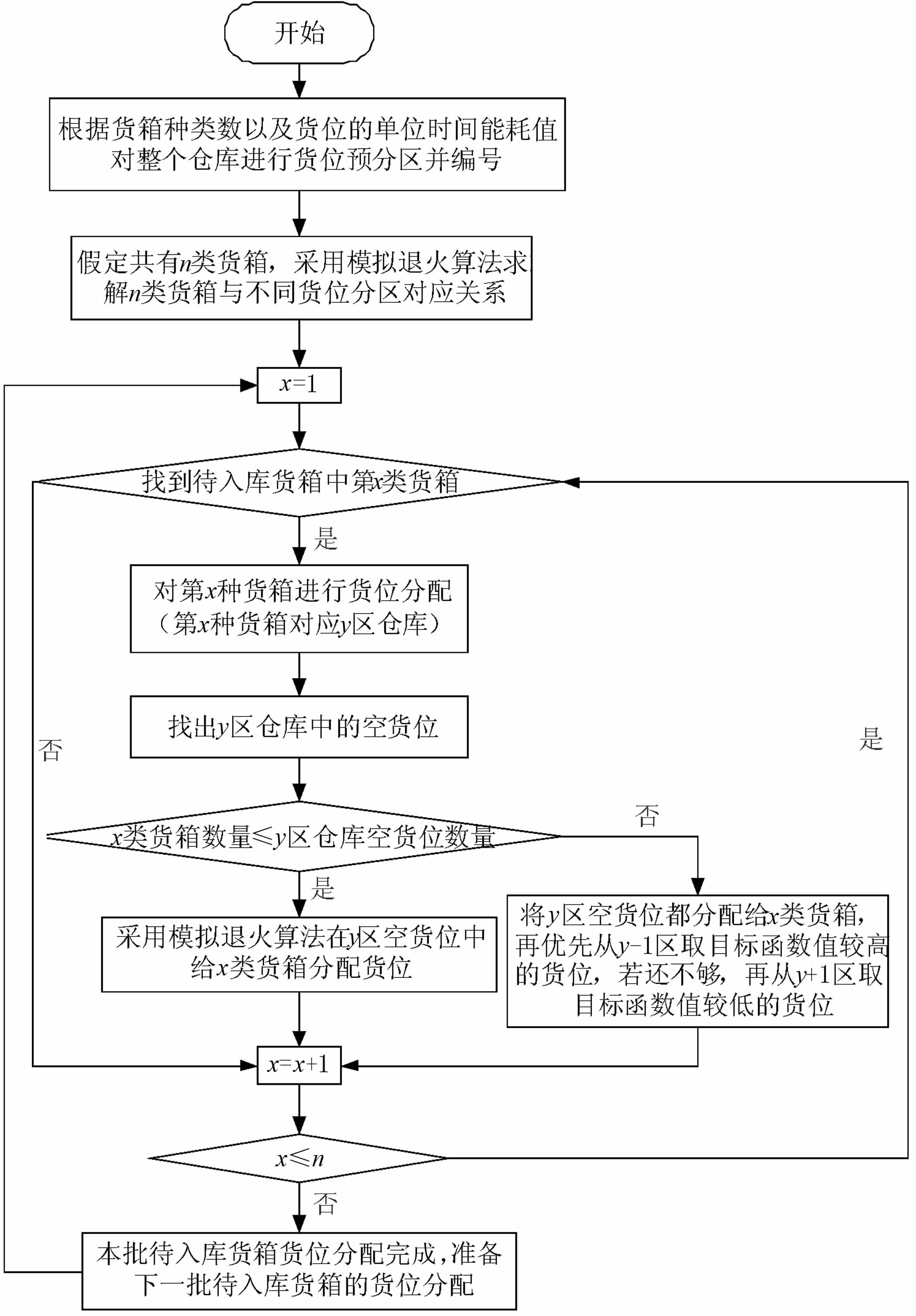 图 3 多批货箱入库货位优化分配流程图 Figure 3 Flowchart of optimal allocation |