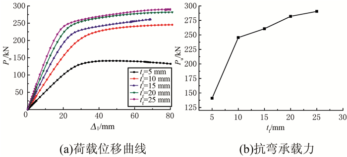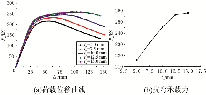 | 图 11 承载力的腹板厚度影响分析 Figure 11 Analysis of effect of web thickness on bearing capacity |