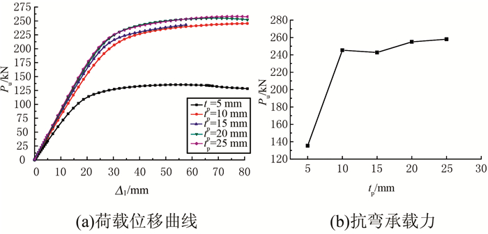 | 图 19 承载力的节点盘厚度影响分析 Figure 19 Analysis of effect of plate thickness on bearing capacity |
