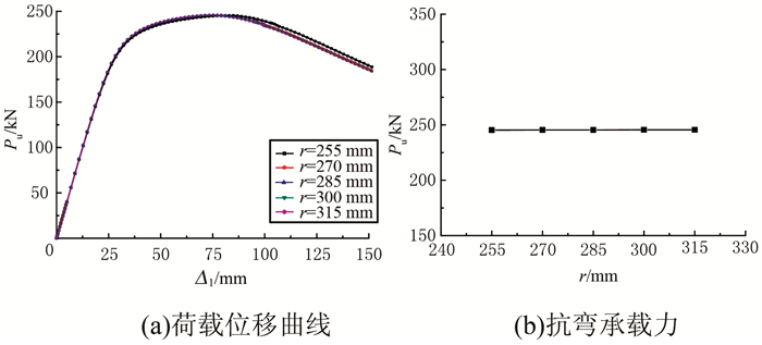 | 图 23 承载力的节点盘半径影响分析 Figure 23 Analysis of effect of plate radius on bearing capacit |