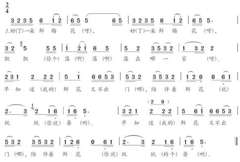 从数百年遗留下来的数十本《花鼓》剧目以及剧目中的【鲜花调】[7]863-893,可以看出这首曲目最初被凤阳花鼓民间艺人所演唱,后来成为乾隆皇帝的祝寿颂歌。通过戏曲流传全国,至今上海昆剧团仍在上演这首【鲜花调】。