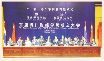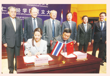 2016年9月21日,渭南师范学院隆重举行" 东盟博仁财经学院" 成立大会,校长丁德科与泰国博仁大学校长达丽卡代表两校签署了合作协议。