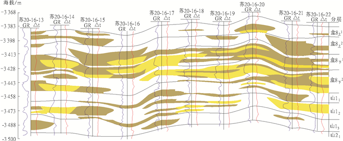 图 2 苏里格气田盒8-山1段气藏剖面图(据赵文智等[21], 2013) Fig. 2 The profile drawing of He8-Shan1 section of Sulige gas reservoir |