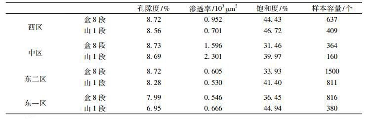 表 1 苏里格气田不同区块物性与含气性统计表 Tab. 1 Statistics of physical properties and gas saturation of different blocks in Sulige gasfield |