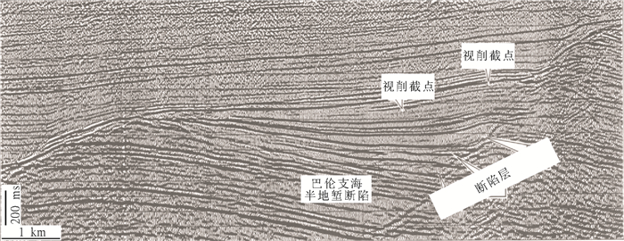 靖海凹陷始新世文昌组的层序格架样式符合海相断陷的特征, 断陷作用引起的基底快速沉降造成了相对海平面的快速上升和物源的迅速后退, 从而在地震剖面上出现了大型的视削截反射, 文昌组下段沿构造高部位分布的大型强振幅砂体被合理地解释为沿岸沙坝更是进一步佐证了海相沉积的存在。