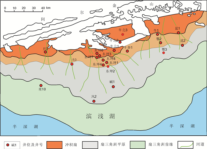 4) 牛东气田的牛东斜坡带沉积物源主要来自阿尔金山, 存在多条不同的物源, 发育大面积的冲积扇—辫状河三角洲沉积体系;砂岩储层连片分布, 沉积体系大面积广覆式稳定分布, 广泛发育物性较好的砂体, 在平面上相互连通, 在垂向上相互叠置;沉积相带分布范围广, 厚度大, 稳定分布, 延伸距离远。