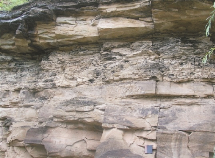 图 8 延安地区谭家河村延长组长6段地质露头剖面 Fig. 8 Geology outcrop section of Yanchang Formation, Chang6 segment located in Tanjiahe Village of Yan′an area |