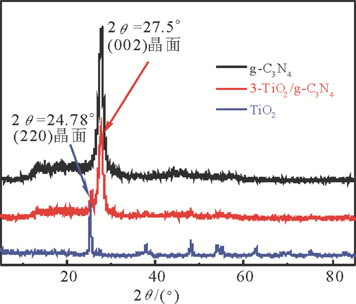 图 1 g-C3N4, TiO2和3-TiO2/g-C3N4样品的XRD图 Fig. 1 XRD patterns of g-C3N4, TiO2 and 3-TiO2/g-C3N4 |