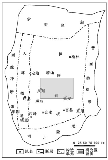 图 1 研究区区域地质图 Fig. 1 Map showing regional geology of Ordos Basin |