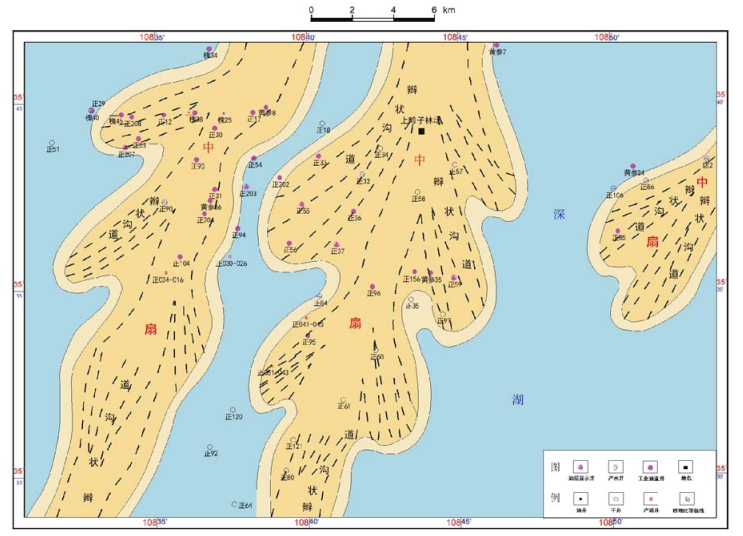 图 3 鄂尔多斯南部延长组长6沉积相图 Fig. 3 Sedimentary facies of Chang 6 Formation in southern Ordos |