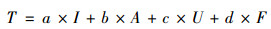 其中, C为变量间的协调度, f(x)和g(y)分别表示两个子系统的发展水平, k(k≥2)为模型的调节系数; D为协调发展度; T表示两个系统的整体发展水平, 其中, a和b为待定权重。