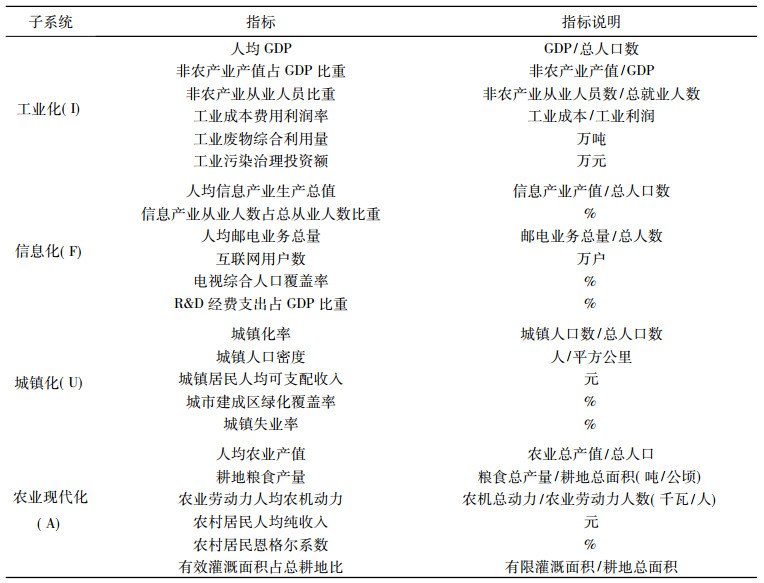 表 1 工业化、信息化、城镇化、农业现代化发展水平评价指标体系 |