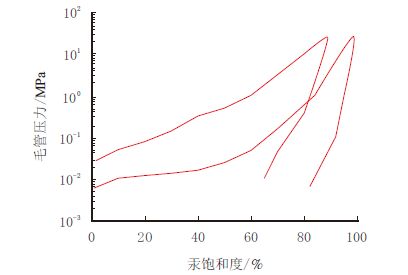 | 图3 JX2 压汞法毛管压力曲线图 Fig. 3 Capillary mercury pressure curves of Well JX2 |