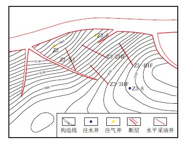 | 图10 ZJD 油田东区阜三段构造图 Fig. 10 Tectonic map of the third member of Funing group in easternZJD Oilfield |