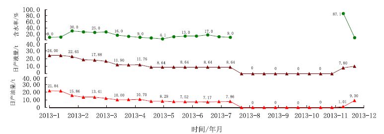 | 图11 ZJD 油田中心井见效生产曲线 Fig. 11 Production curve of the central well in ZJD Oilfield affter CO2 injection |
