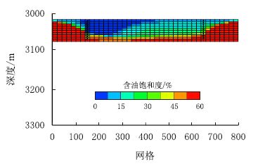 | 图2 倾角0 时预测期末剩余油分布 Fig. 2 Remaining oil saturation distribution at the end of predicting period when dip angle=0 |